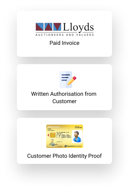To authorise a third party (like a Truckit provider) to collect your Lloyds Auctions purchase, you must first call Lloyds Auctions and give them the name of your transport provider and permission for them to collect your items. This will be noted on your Lloyds account.